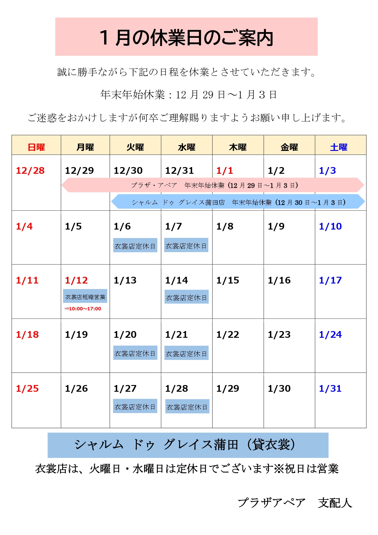 誠に勝手ながら、下記日程にて年末年始休業とさせていただきます。