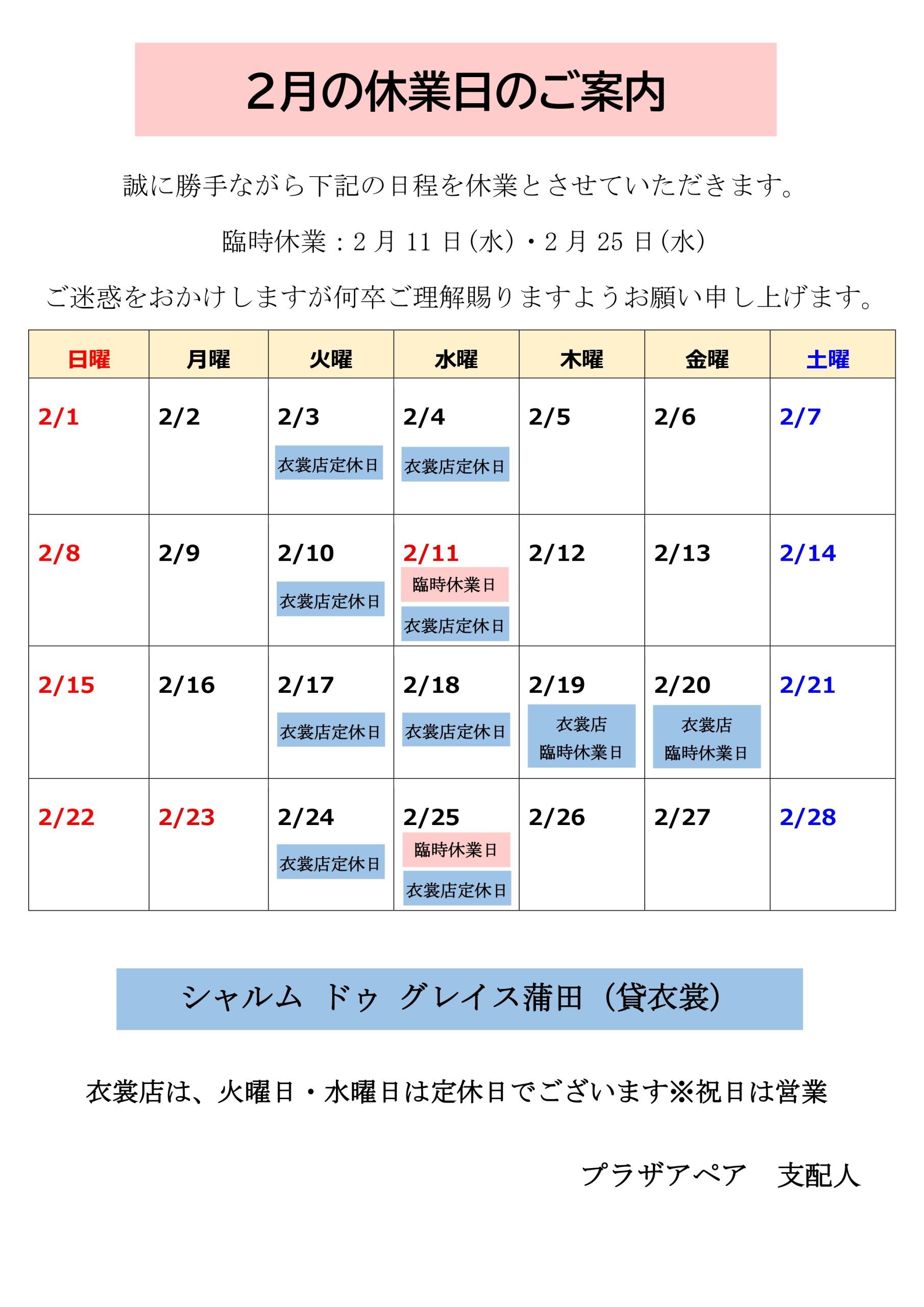 誠に勝手ながら、下記日程にて休館日とさせていただきます。